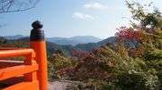 紅葉を楽しみ?、鞍馬寺から比叡山を望む