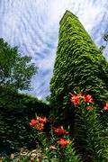 古い煙突と赤い百合