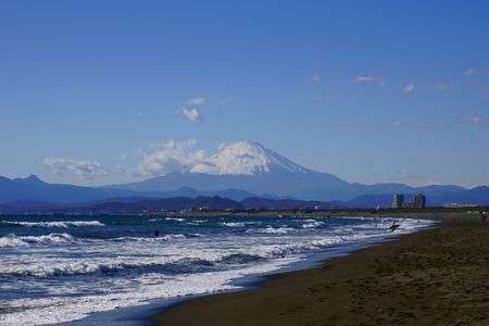 鵠沼海岸から富士山を望む