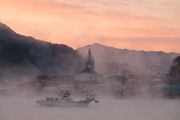 けあらしの朝の漁港