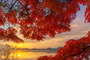 紅葉と朝焼け