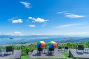 琵琶湖とパラソル