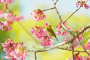 寒緋桜とメジロ