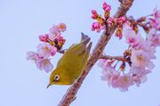 大寒桜とメジロさん