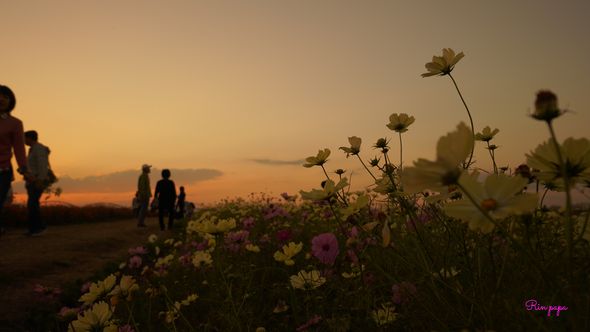 黄昏時のコスモス畑