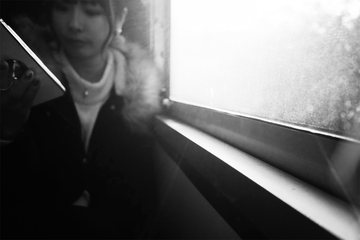 - 美しい風景よりもスマホを見る女性。撮り手もまた、直線に心惹かれている。すべてが曖昧で、すべてが魅力的。