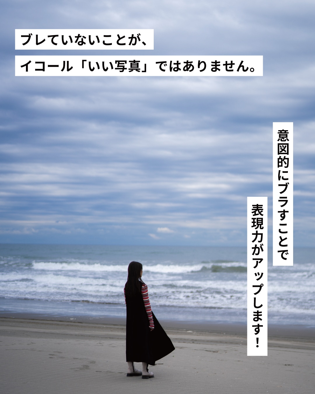ブレが大きいほど、スピード感のある写真になります。背景はくっきりクリアに、被写体だけをブラすことで、動きの速さを可視化できます。街中の雑踏や交差点など、人々が行き交うシーン表現したい時にも、ぴったりの手法です。