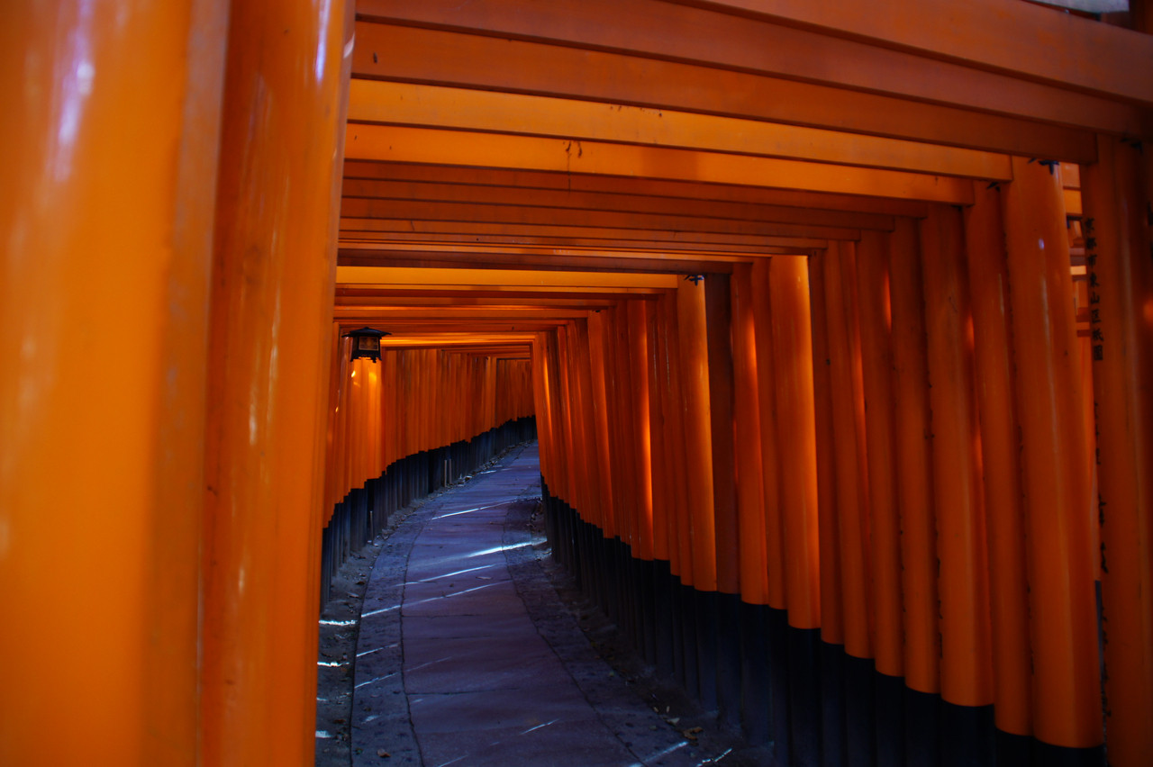 伏見稲荷大社の千本鳥居。 実物は圧倒される位なのに写真じゃ雰囲気が出ない・・・。