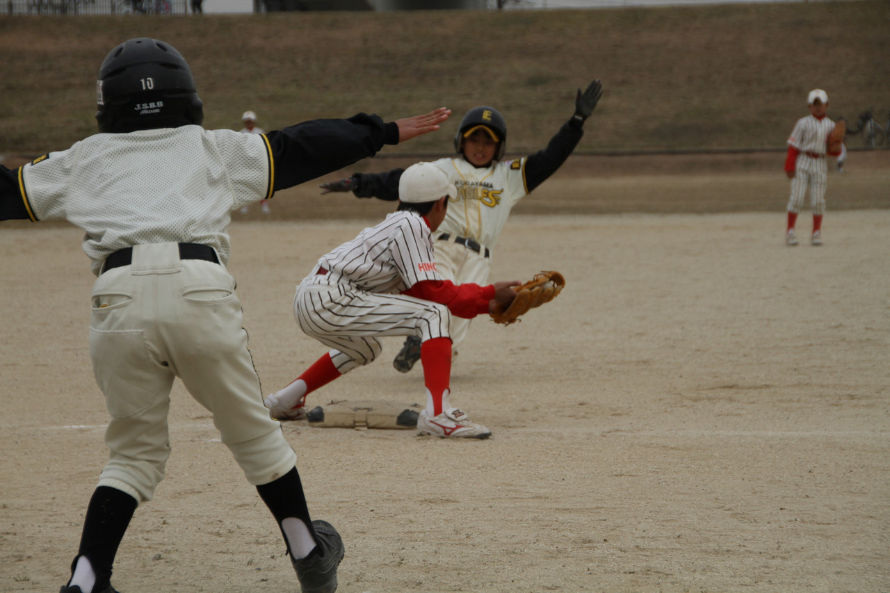 サードでの攻防。アウトかセーフか? 子供達は真剣に一生懸命プレーしています。この子供達を少しでも応援したい!!
