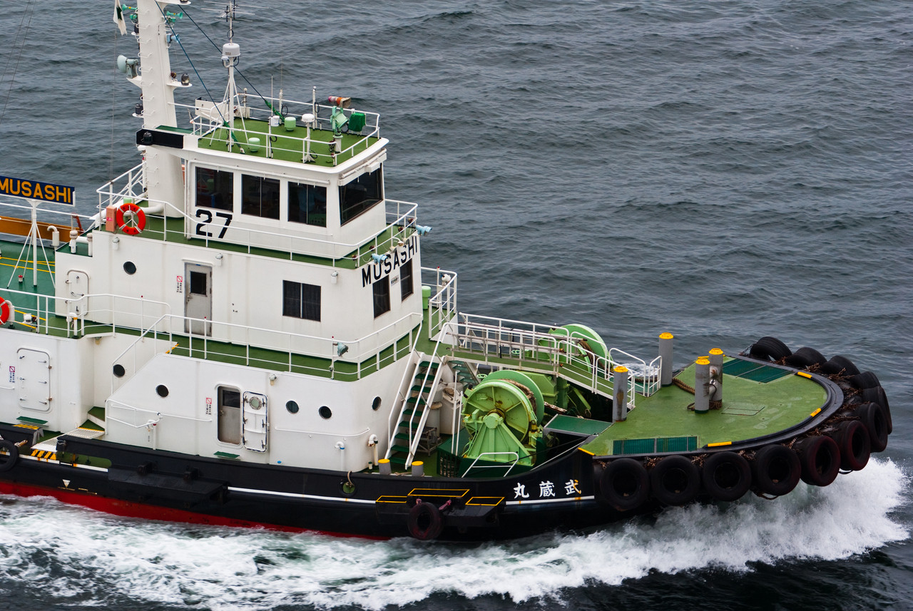 2010年9月26日 横浜ベイブリッジのスカイウォークが閉館になる日に展望台からタグボートを撮影しました。