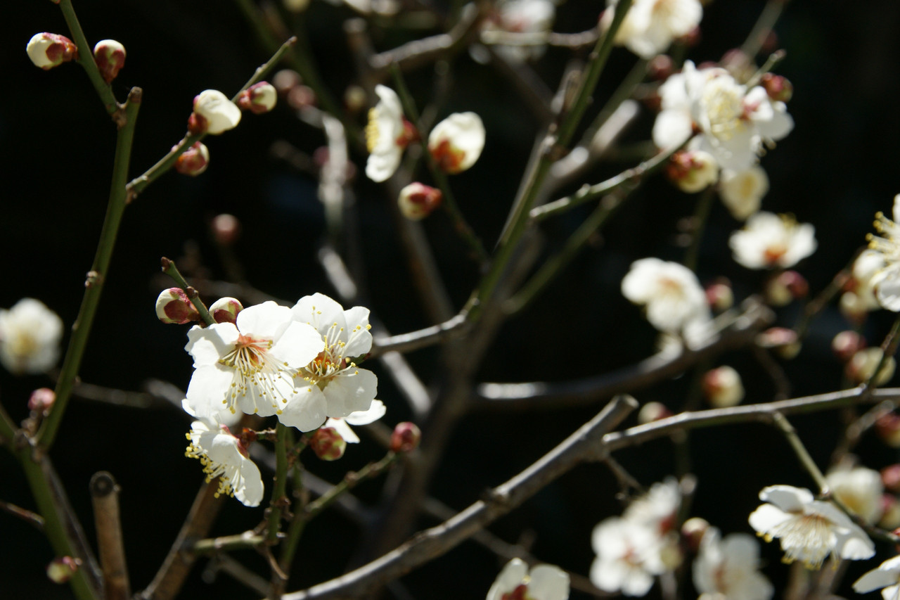 庭の南高梅の花がやっと咲いた。