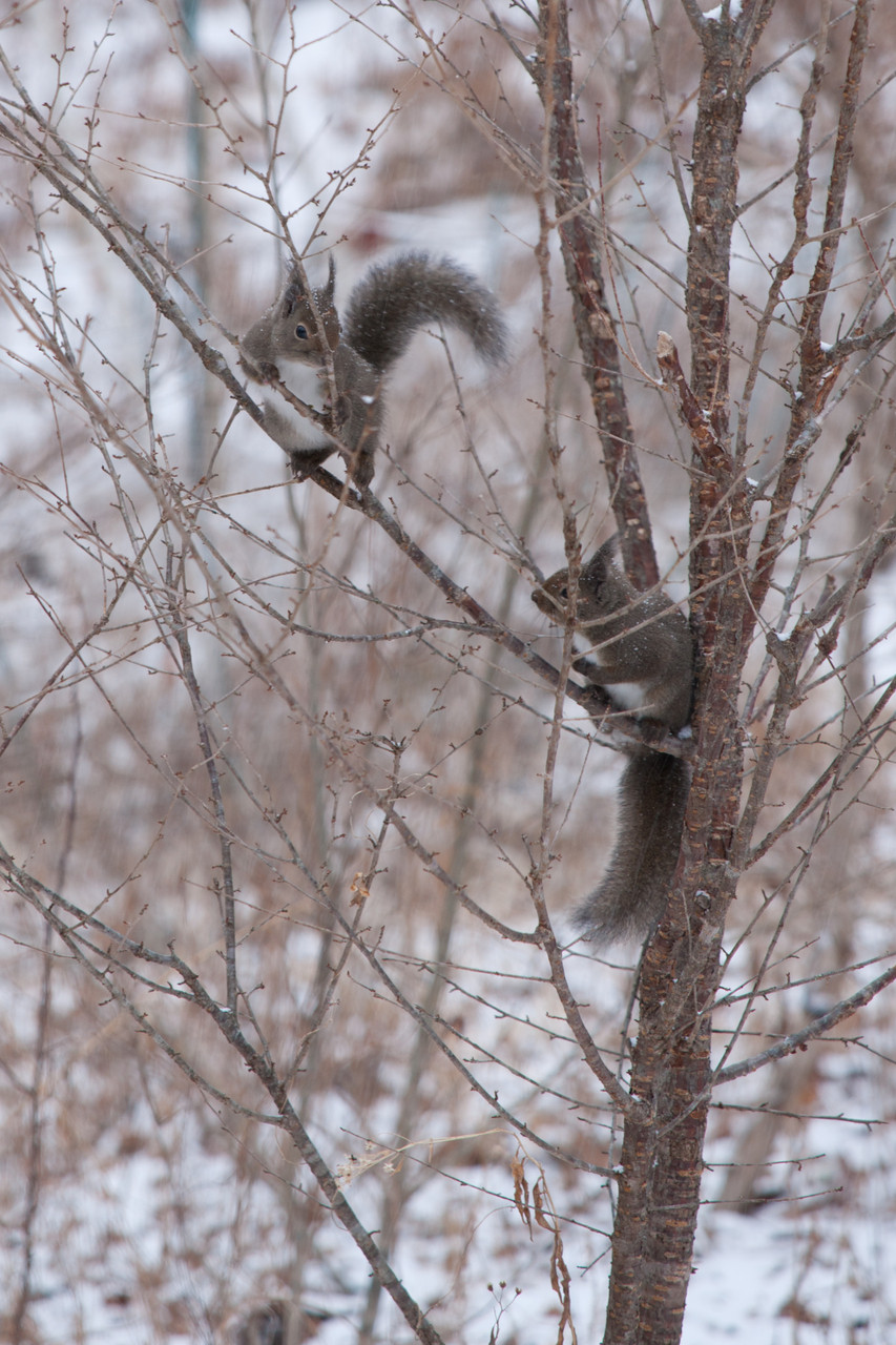 庭の富士桜に登ったリスです。