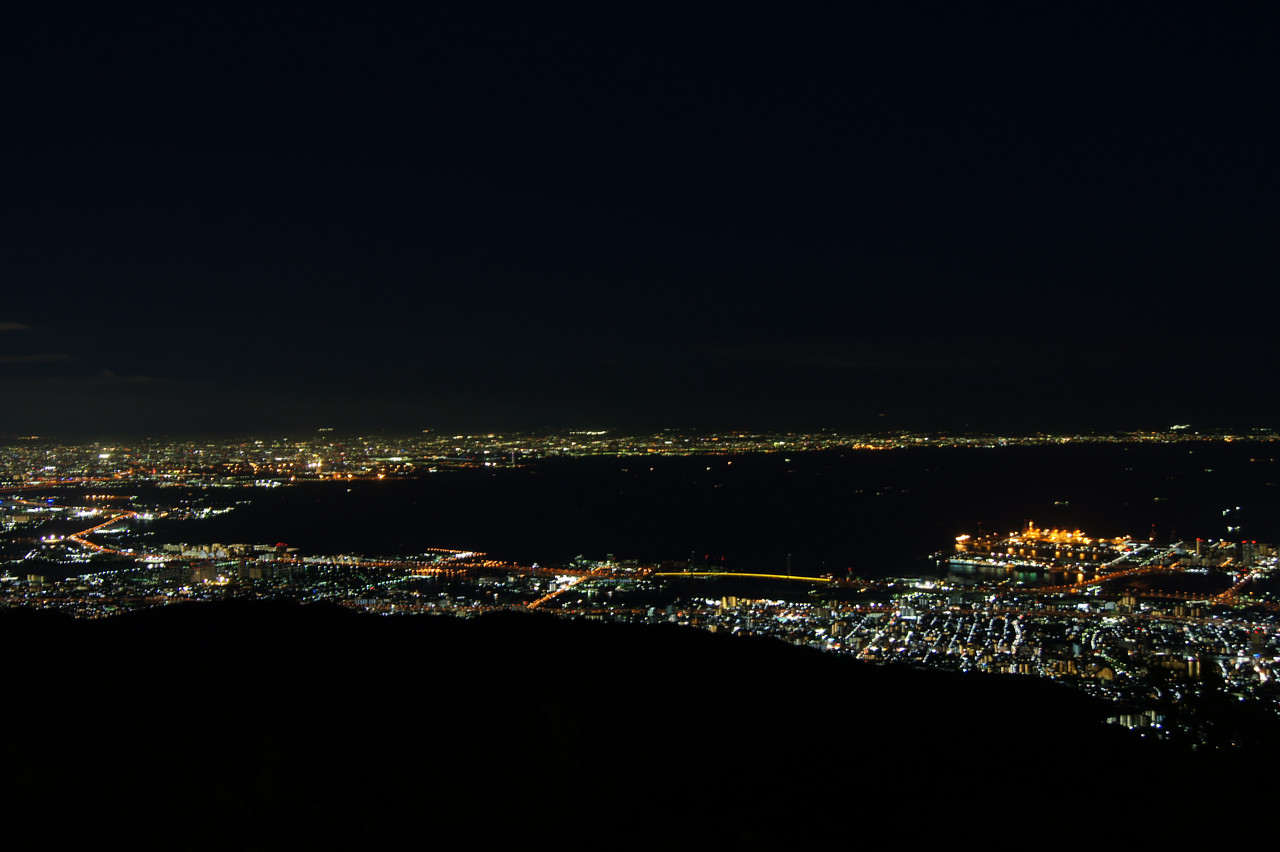 下に見える神戸の街とちがい山頂はとても気温が低かったのが印象的でした。 夜景モードは簡単に手軽に夜景が撮影できますが、あえて手持ちで2.5秒のバルブにチャレンジ。何枚も失敗しこれが限界でした。 で、”手持ち夜景モード”のすごさを実感しました。 悪戦苦闘の思い出の1枚