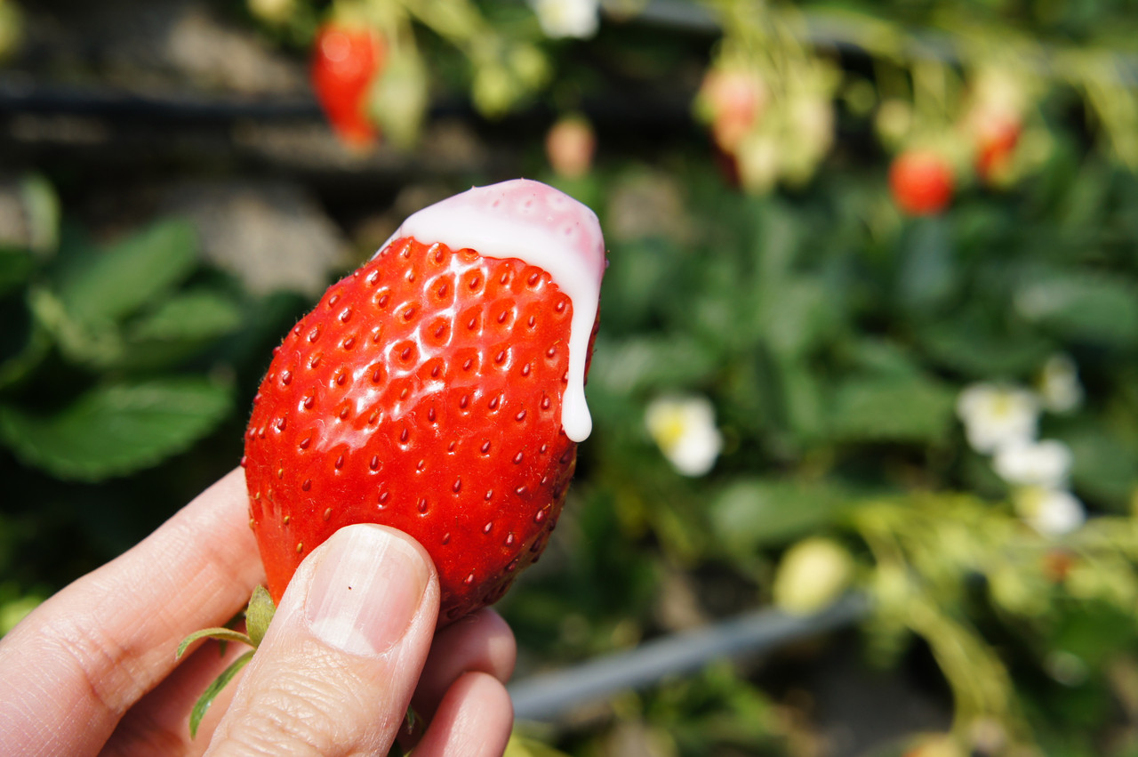 静岡にいちご狩りに行きました。ミルクってつけなくて十分おいしいけど、もらうと付けたくなります。
