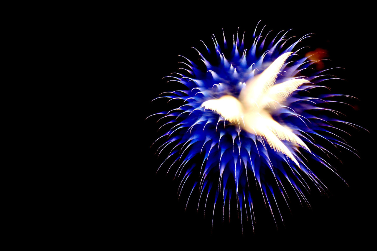 地元の花火にて撮影。 シャッタースピードとぼかしを使ったら、偶然にも鳥のような形に撮れました。