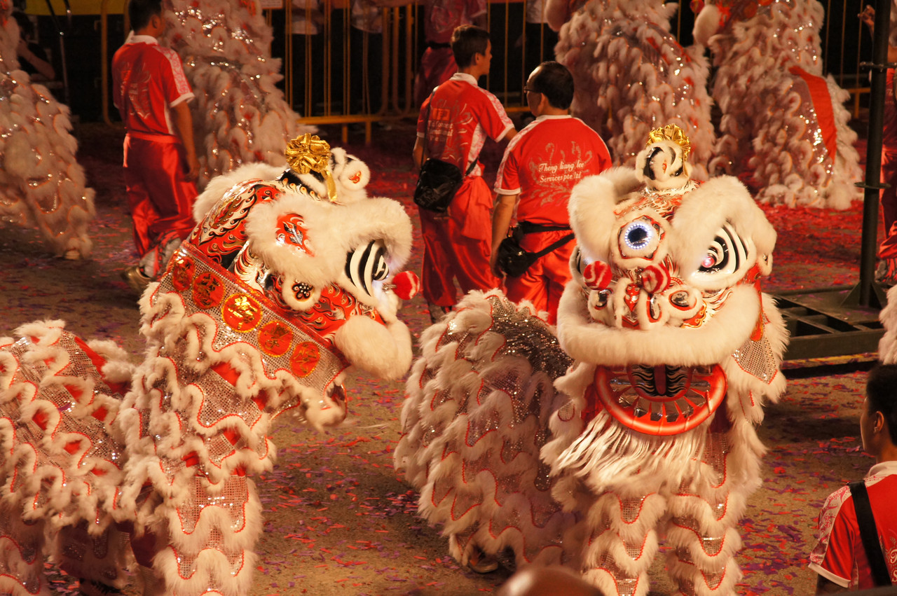 チャイニーズニューイヤーに欠かせないライオンダンスです、50組ほどいて壮観でした。