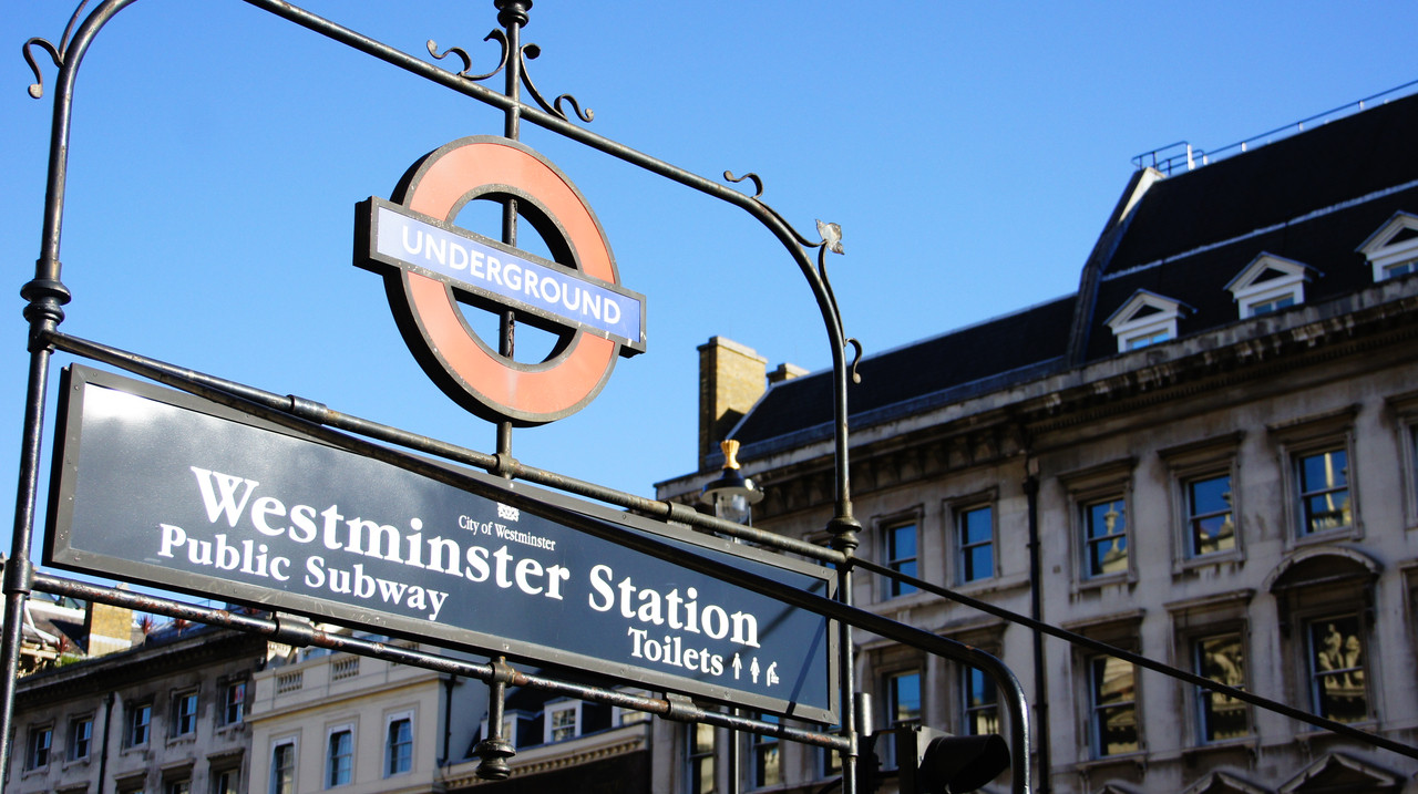 イギリスの地下鉄。 地下に入るとどこもかしこもあの赤い丸のマークがありました。