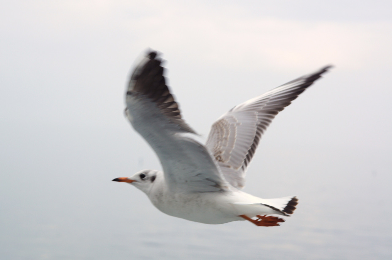 有明海をフェリーで渡る際、乗客から「かっぱえびせん」を貰うため、寄ってくるカモメたち。真剣な顔をしていますね。