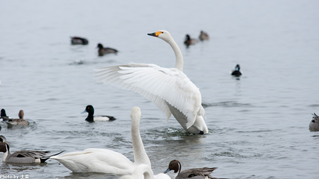 翼を広げる美しい 冬の猪苗代湖です。