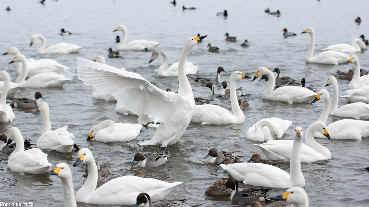 翼を広げる美しい その2 冬の猪苗代湖です。