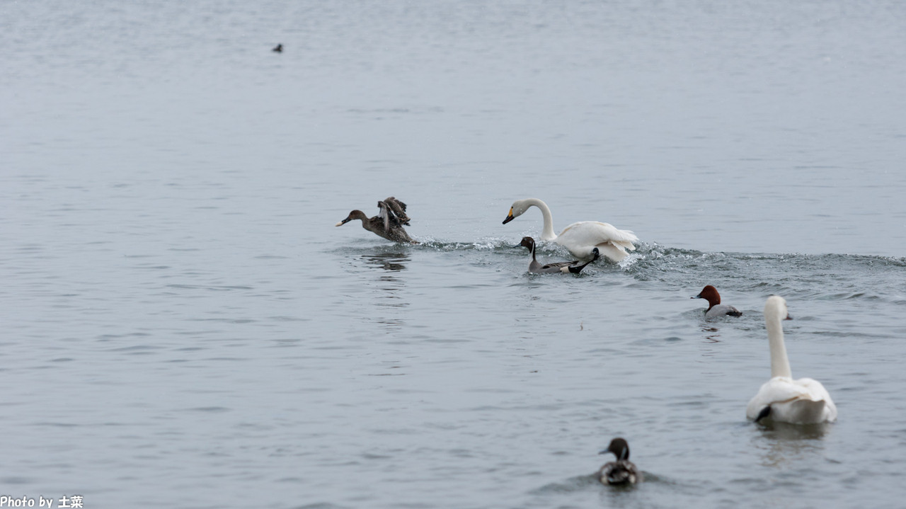 カモの餌を、白鳥が。。。