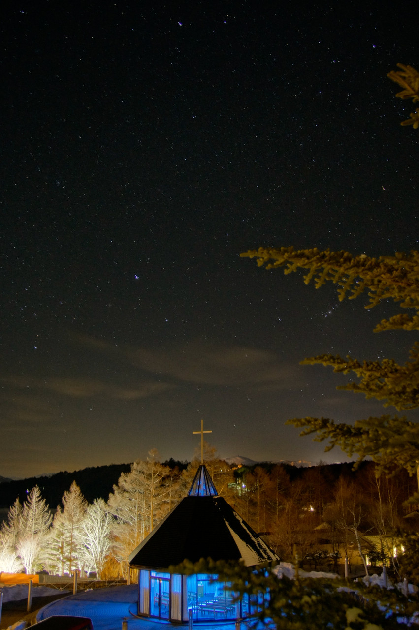 スキーに行ったホテルの部屋から見た星空を撮りました