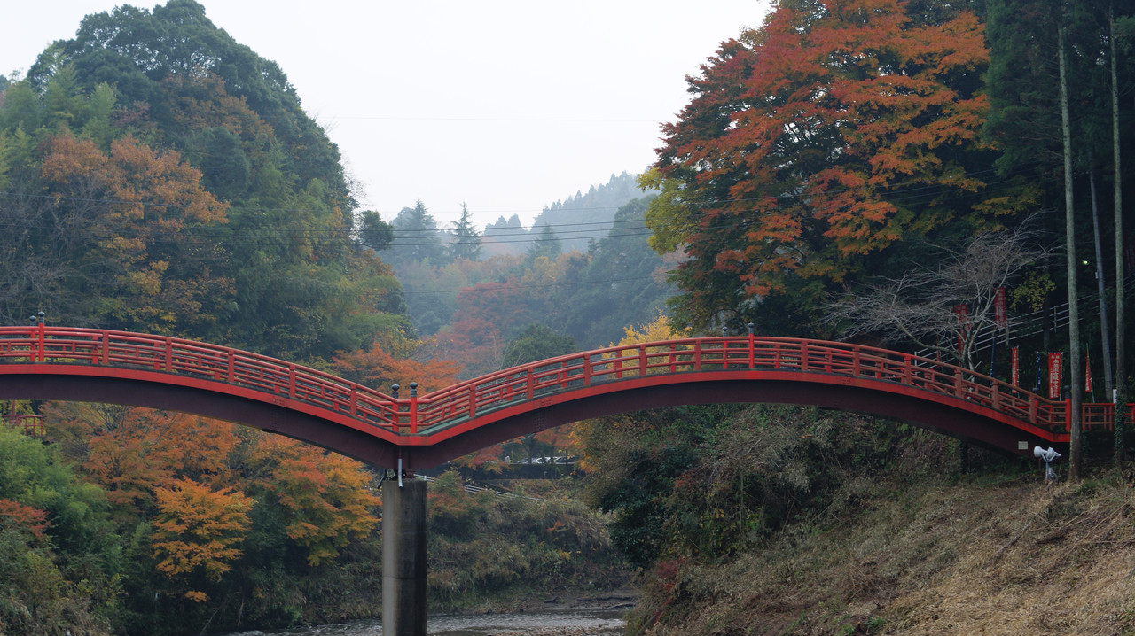 紅葉に赤い橋