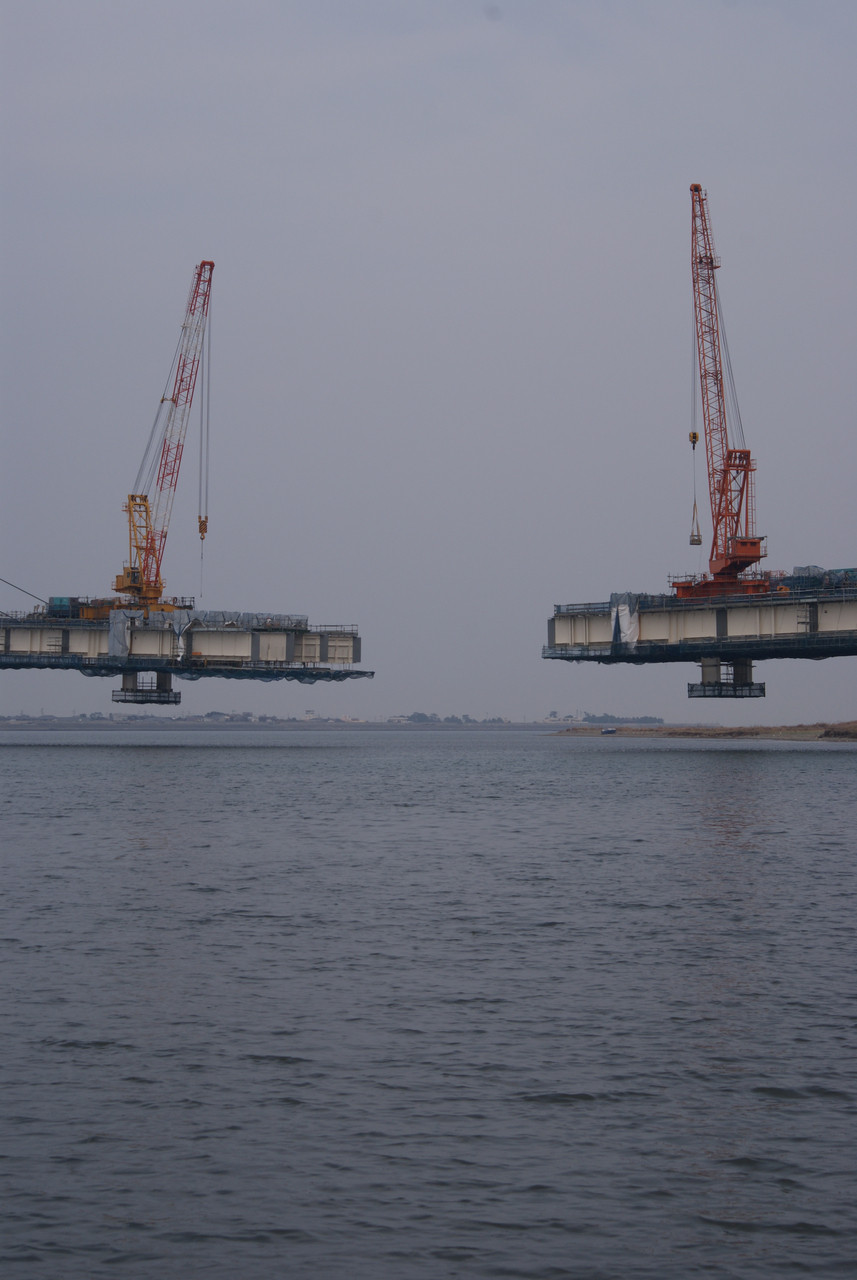 徳島県吉野川に建設中の橋です