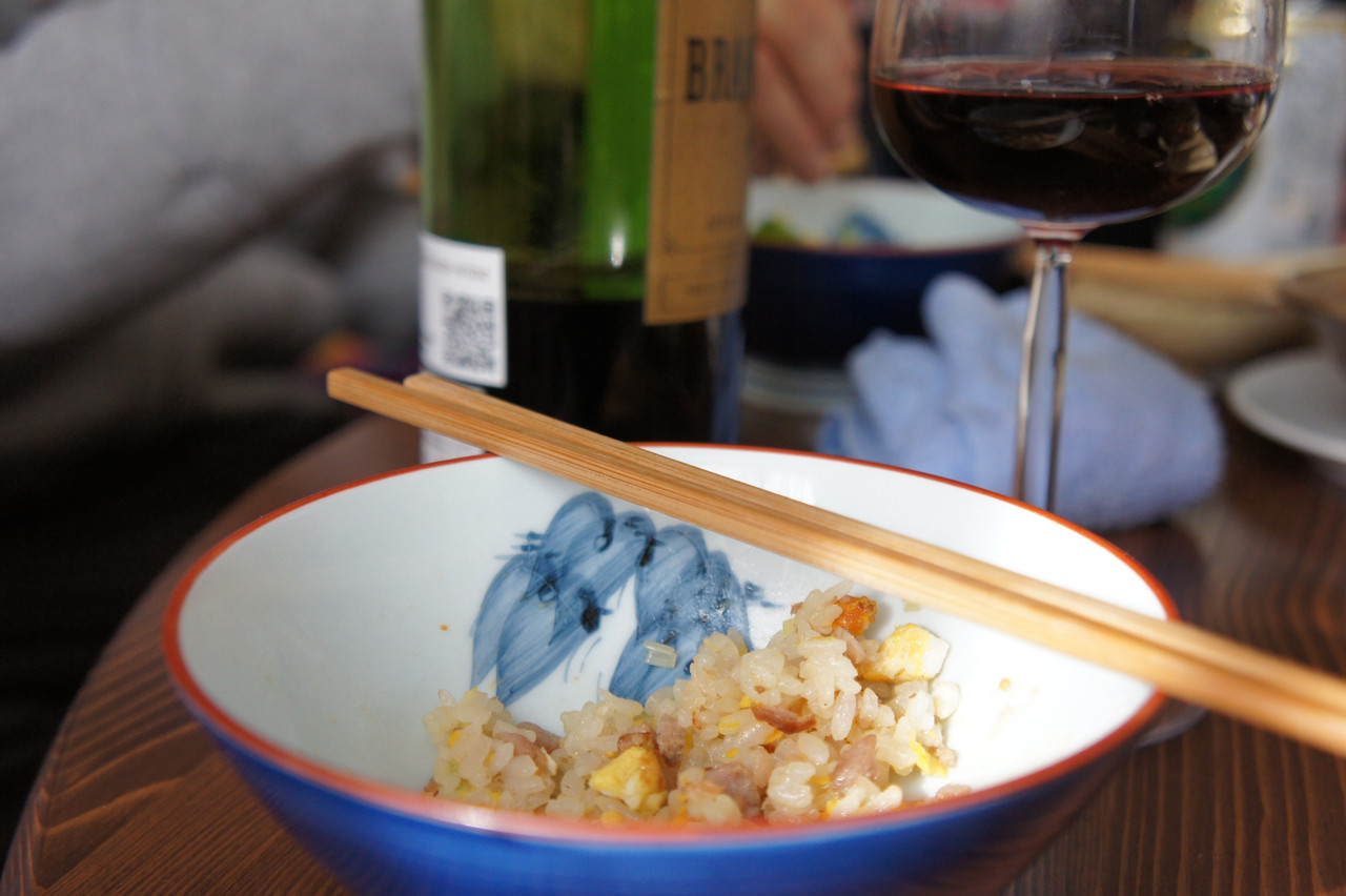 チャーハンとワイン。