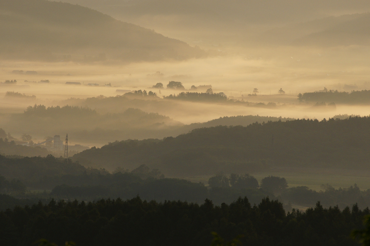 北海道です。 朝日が差してきて町が金色に・・、写真を撮りながらちょっと感動していました。