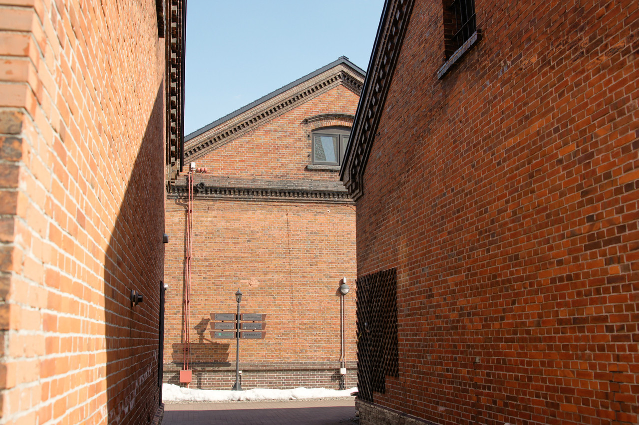 明治30年代に建てられた煉瓦造りの倉庫群。 奥の建物は大雪地ビール館。