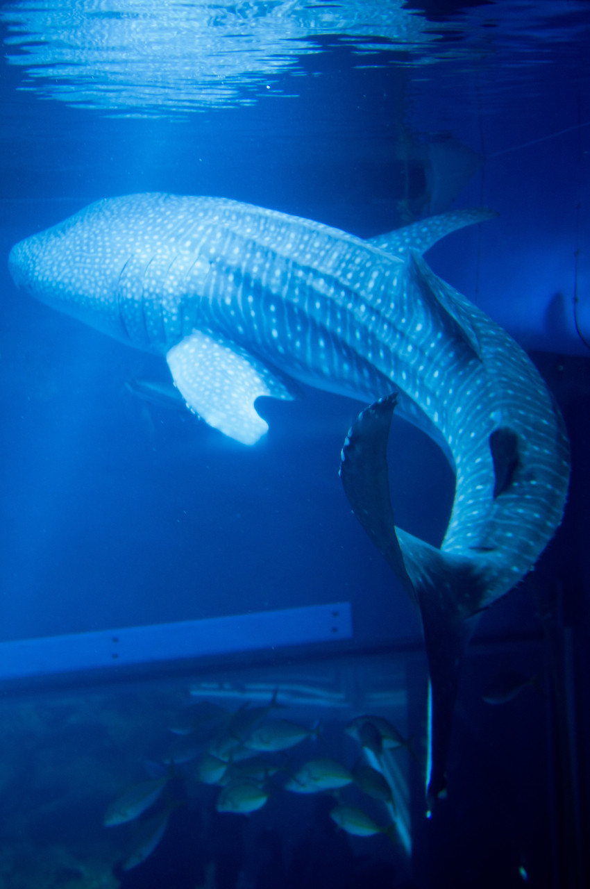 春休み日曜日の大阪海遊館は本当に人がいっぱいで大変でした!子供の世話で写真どころではない、というのが正直なところですが、ジンベイザメを何とか収めることができました。