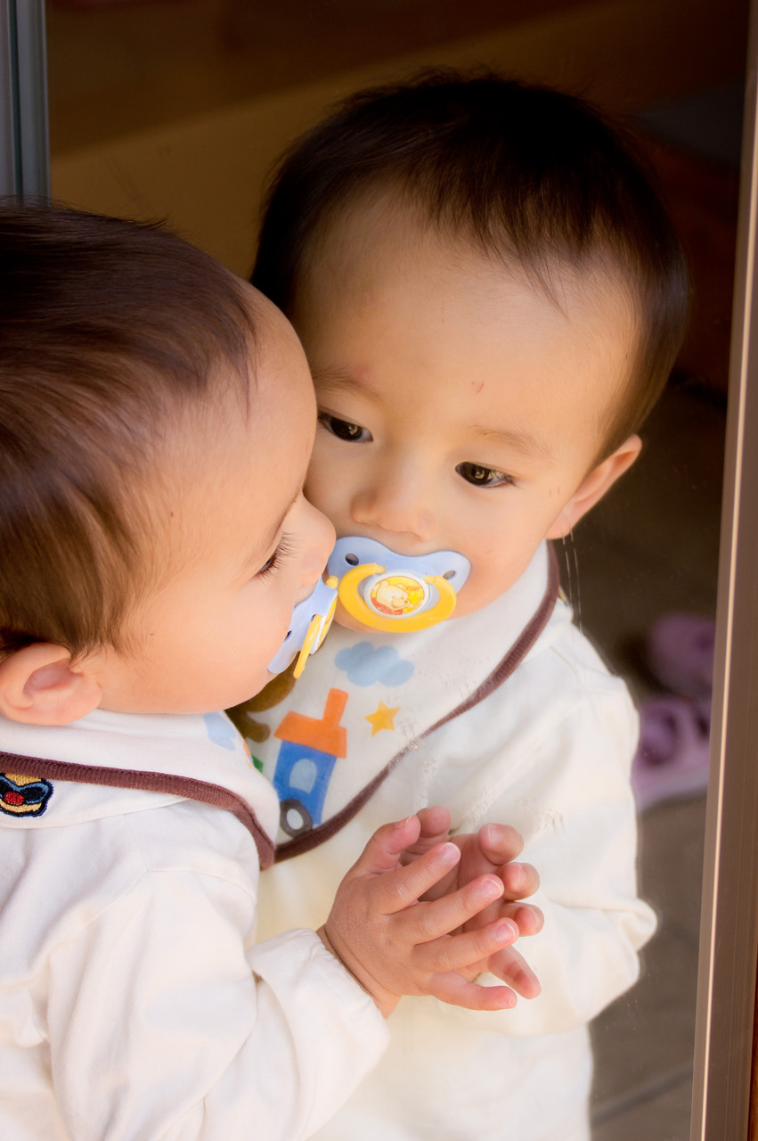 ニヤニヤしながら頬ずりしていました。さすがにもう鏡の向こうの自分の存在は理解できていると思いますが・・・まだ分かっていないかなぁ?