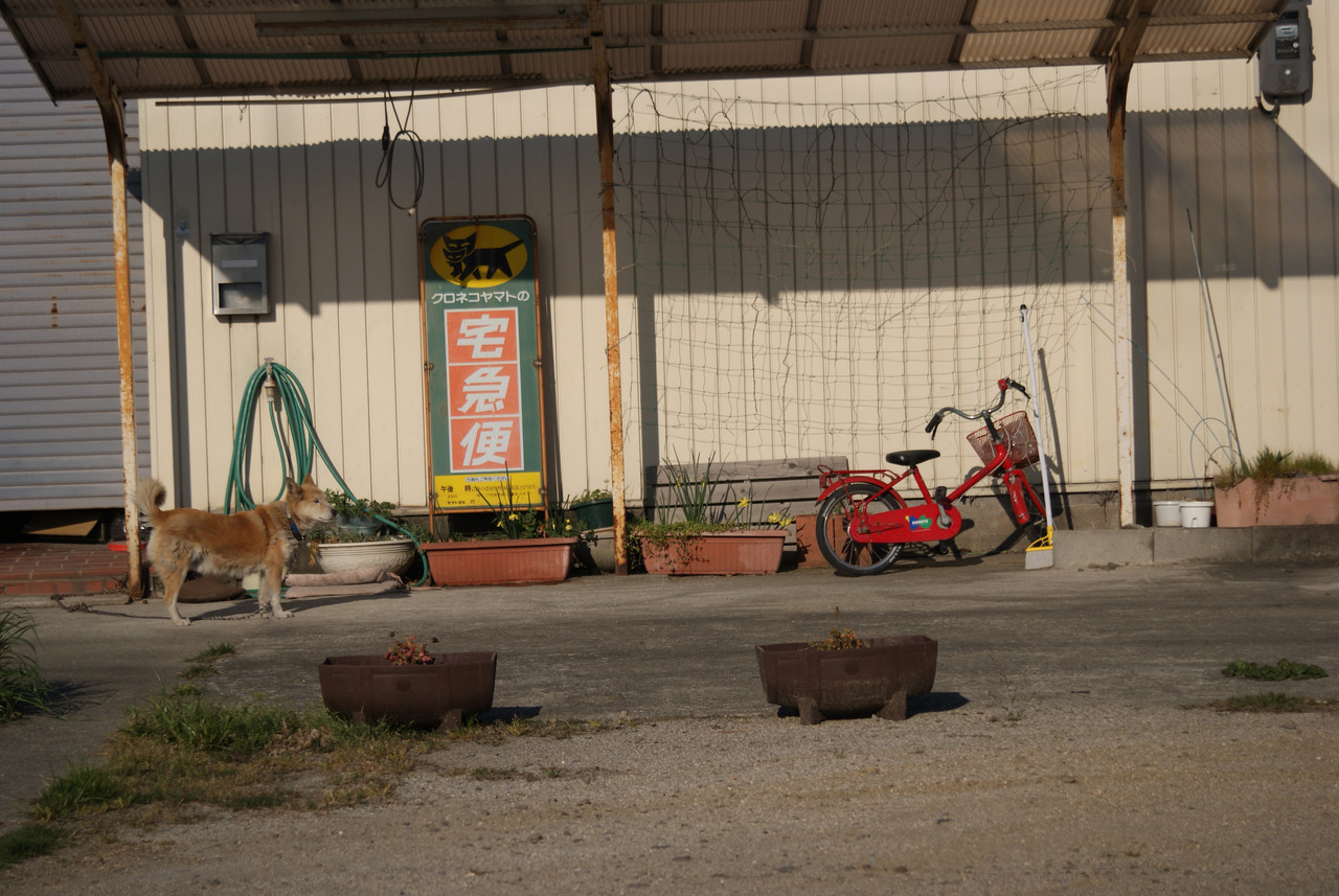 通勤途中目についた赤い自転車、車中よりカシャ