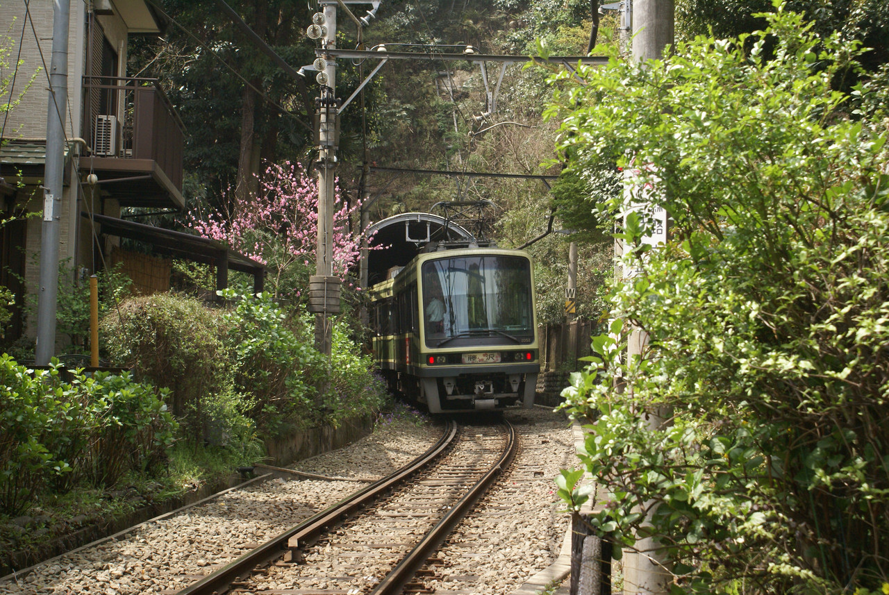 極楽寺トンネルに入っていく藤沢行き電車
