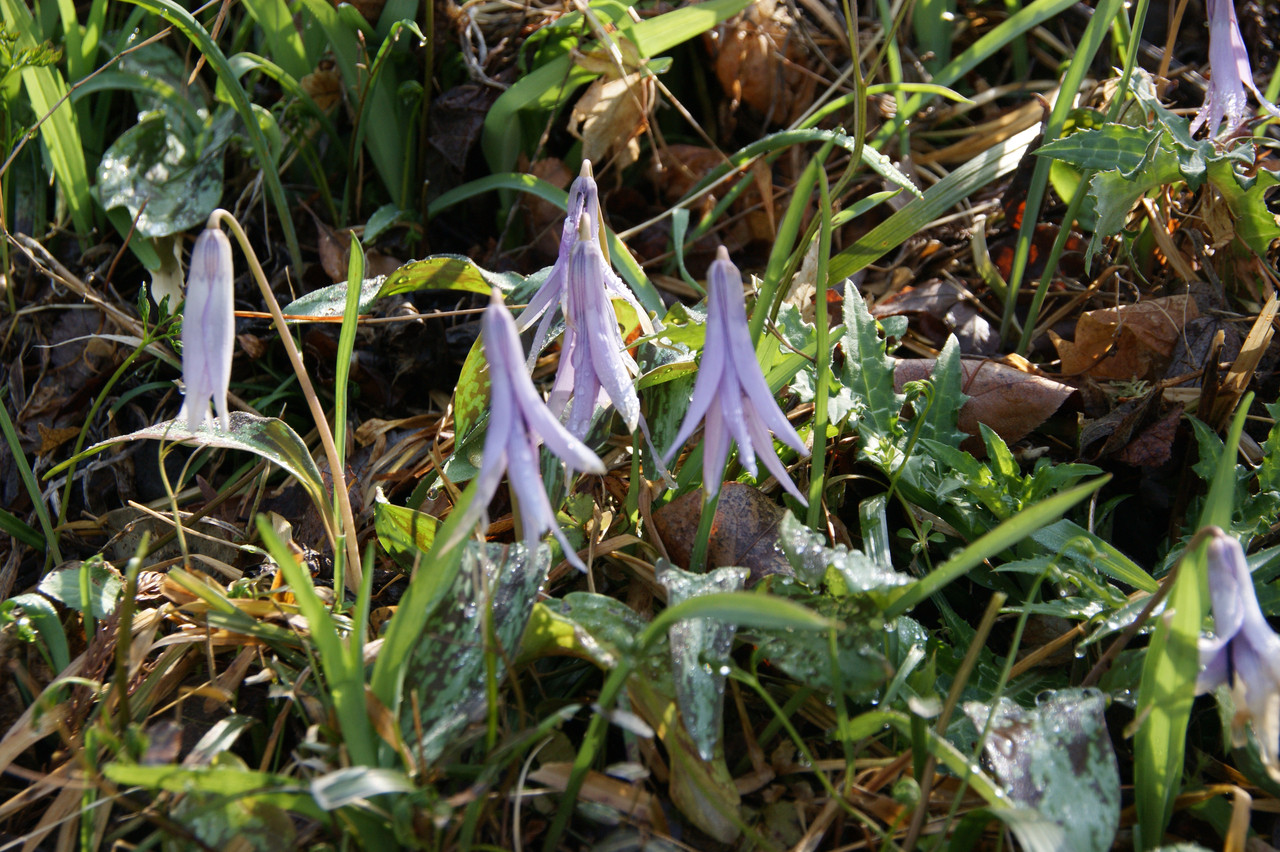 奈良県宇陀市の「森野旧薬園」のカタクリです。前日雨が降ったので、ちょっと心配。これはまだ咲いていない花たちです。