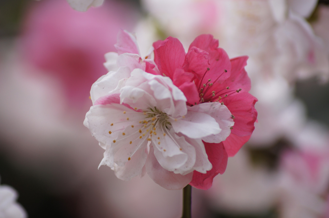 ウォーキングの途中で見つけた桜。 普通の桜とはちょっと違う品種だと思います。
