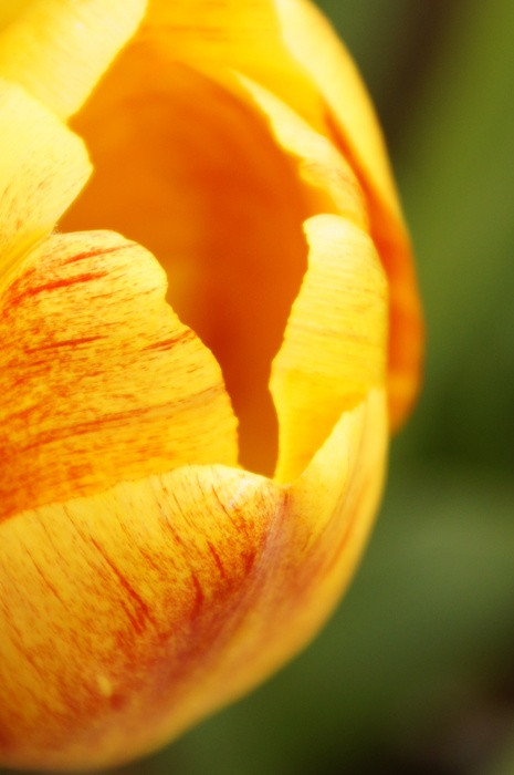 赤と黄色のチューピップの中にポツンと咲いてました