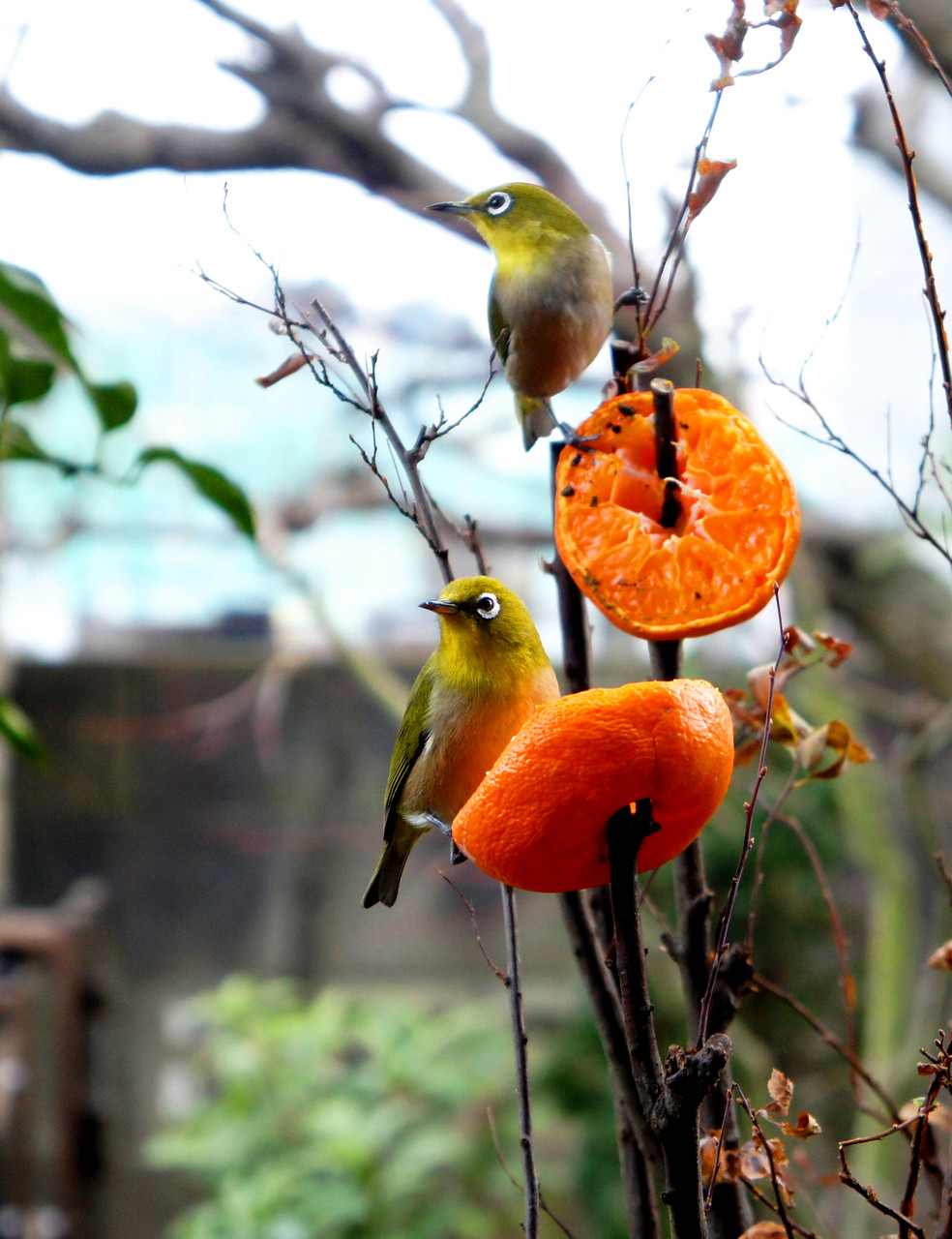 ミカンを食べにやってきたメジロちゃんたちです。