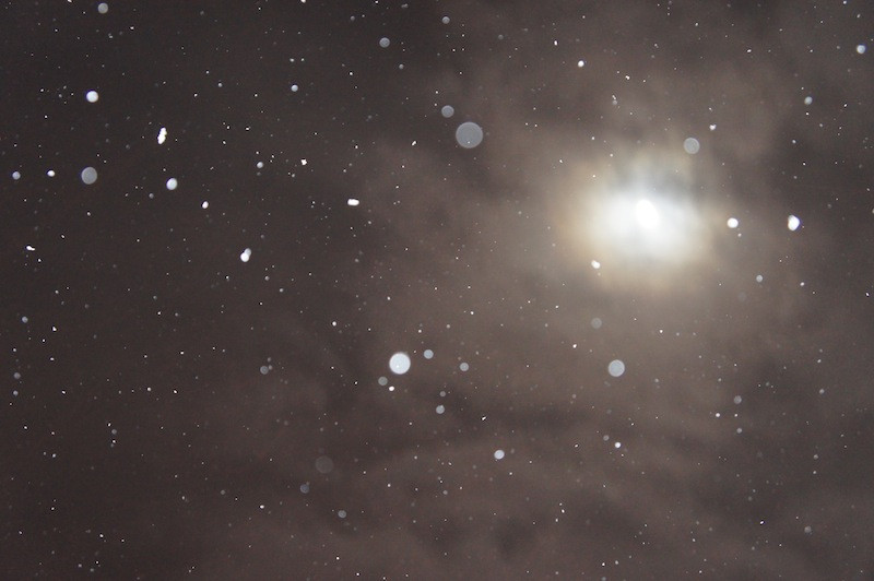 酔っぱらって撮った月と雪