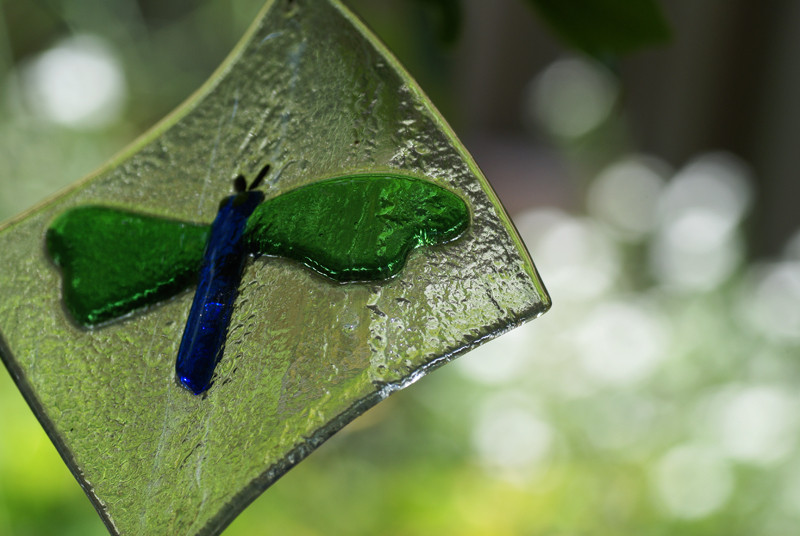 庭のガラスのトンボの向こうの白い花たちが雪みたいに写ってくれてうれしい:-)