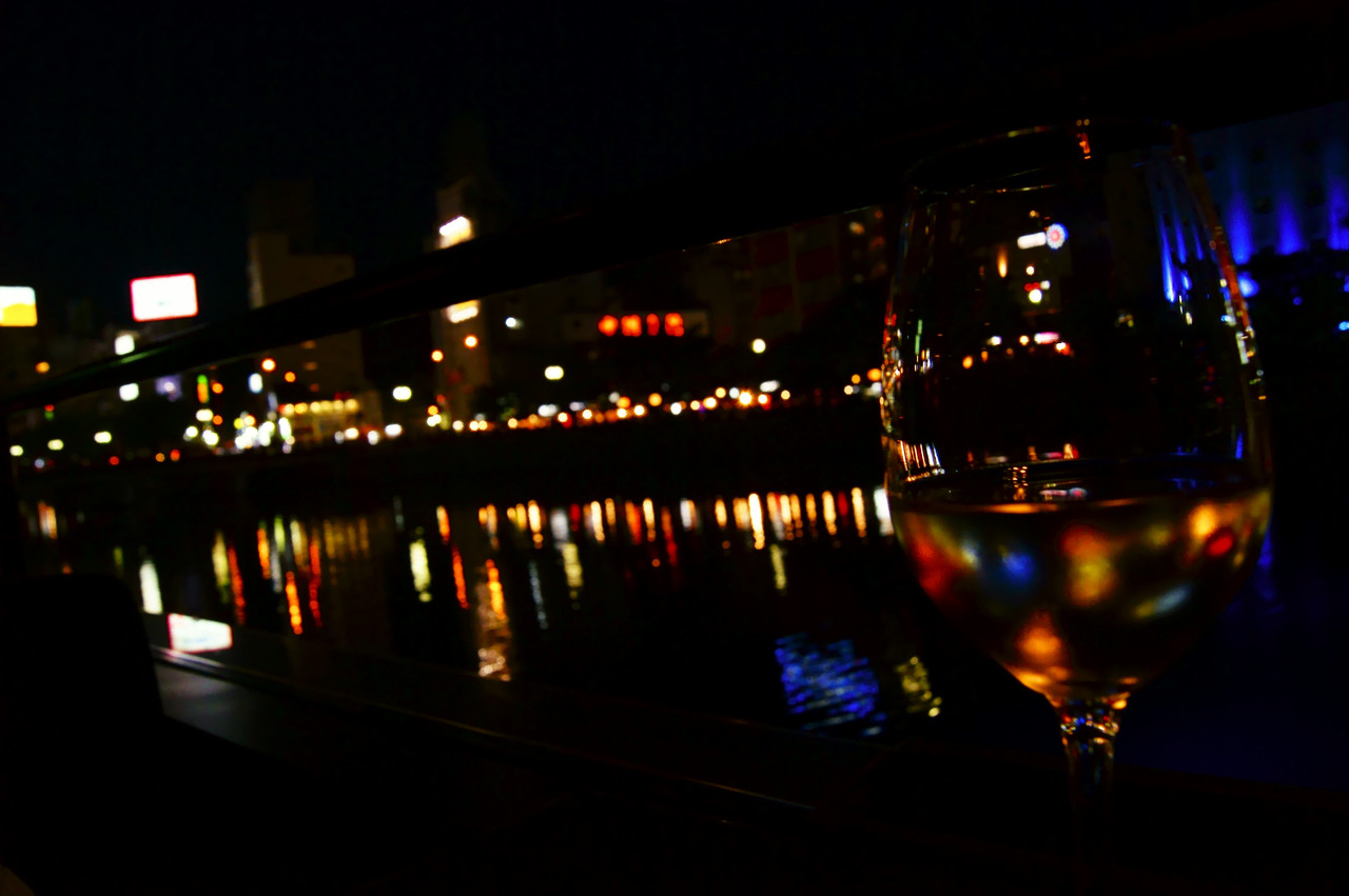 グラスに浮かぶ妖しげなネオン街