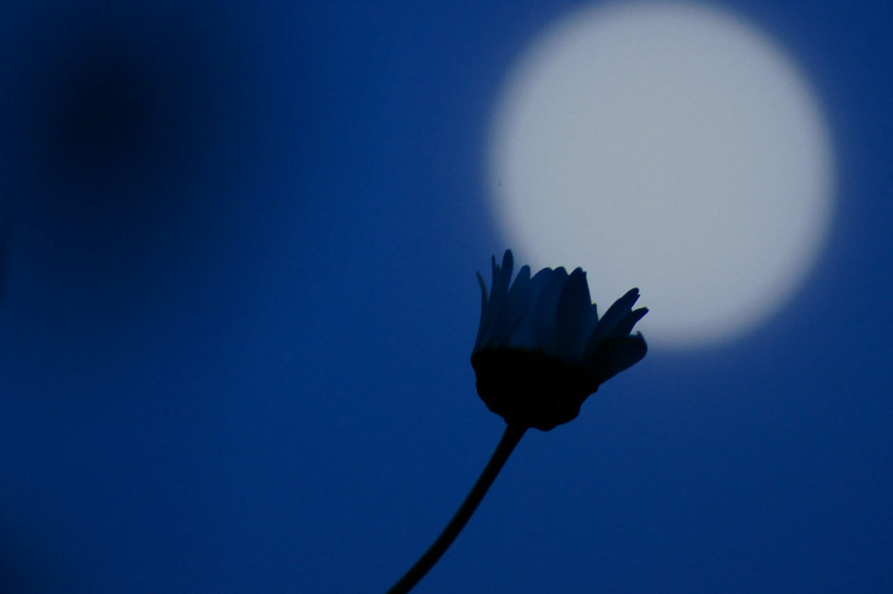 咲きかけた小さな花に月を乗せてみました