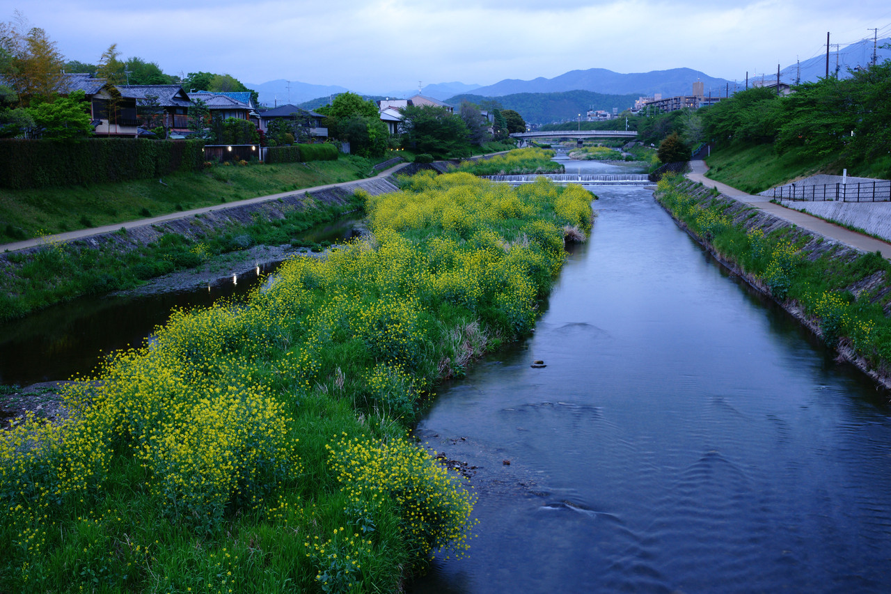 夕暮れ時、家路をいそぐ人々が通る橋の上からです。 春の華やかさのなかに、暮れてゆく寂しさを少し感じながら。 遊び足りないままに帰りをせかされる子供の頃を思い出し・・