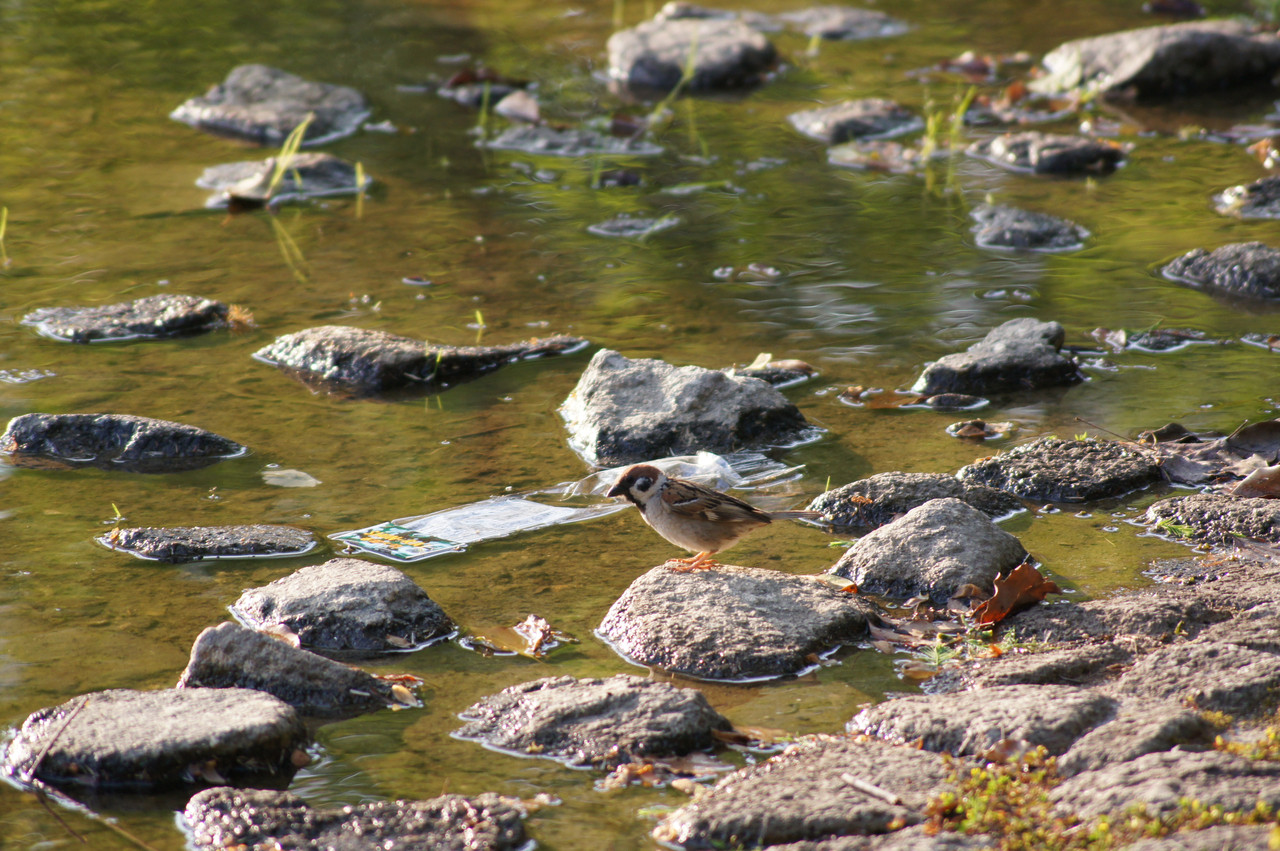 この作品は雀の後ろに流れるゴミで環境問題を訴える…。 嘘です。ピント拡大しながら必死になって追っていてゴミが見えていませんでした。 人間の目って怖い…(っというかわしの目がおかしい(笑)) 自戒を込めてさらします。