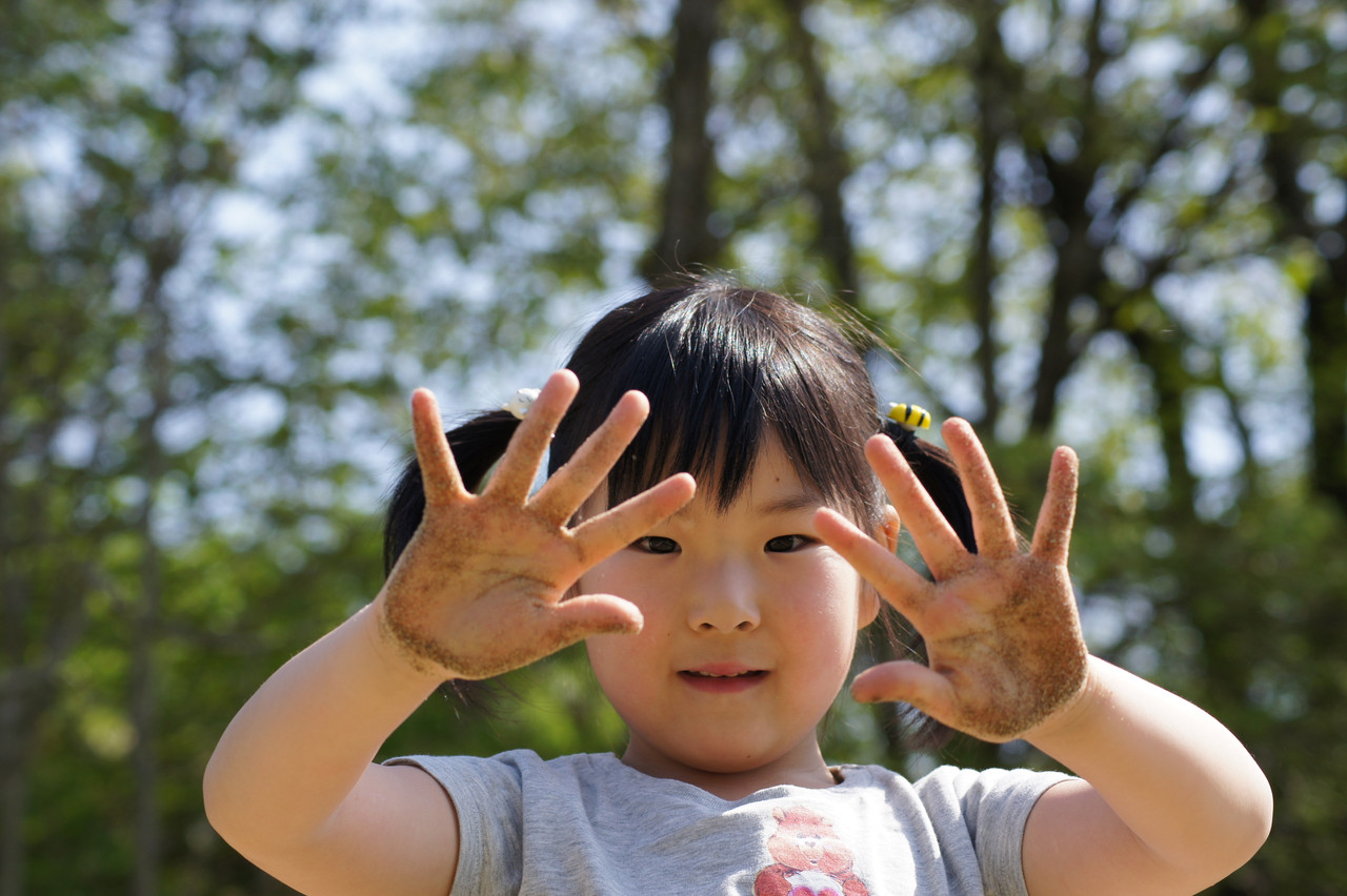 近くの公園で砂遊び!! 彼女は手の汚れに満足してます…