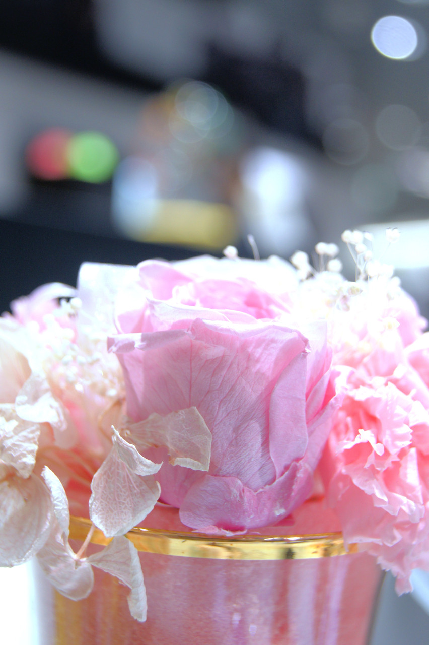 グラスに詰めた生花です。