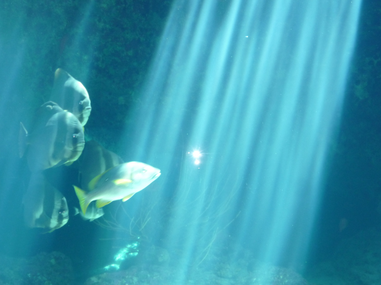 水族館で太陽の光が魚たちを照らしています(^^♪
