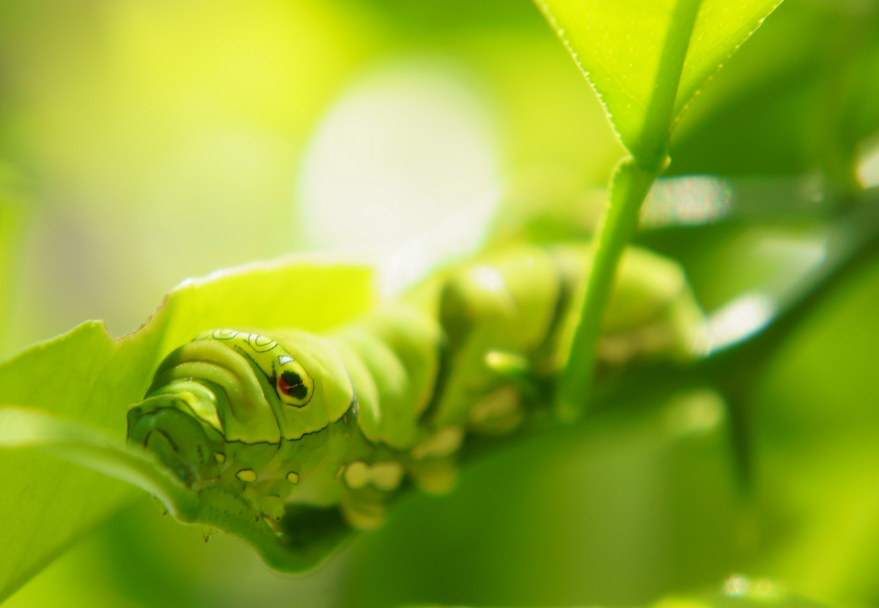 ミカンの木にいたアゲハのイモムシです。 食欲旺盛でした。