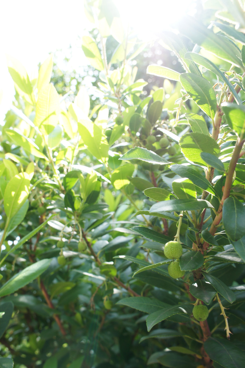 庭にあるいちごの木です。 ・・・別名やまももだったかと? 毎年実が沢山なって、緑→黄色→赤と変色していくのでかわいいです。 これからが楽しみです。